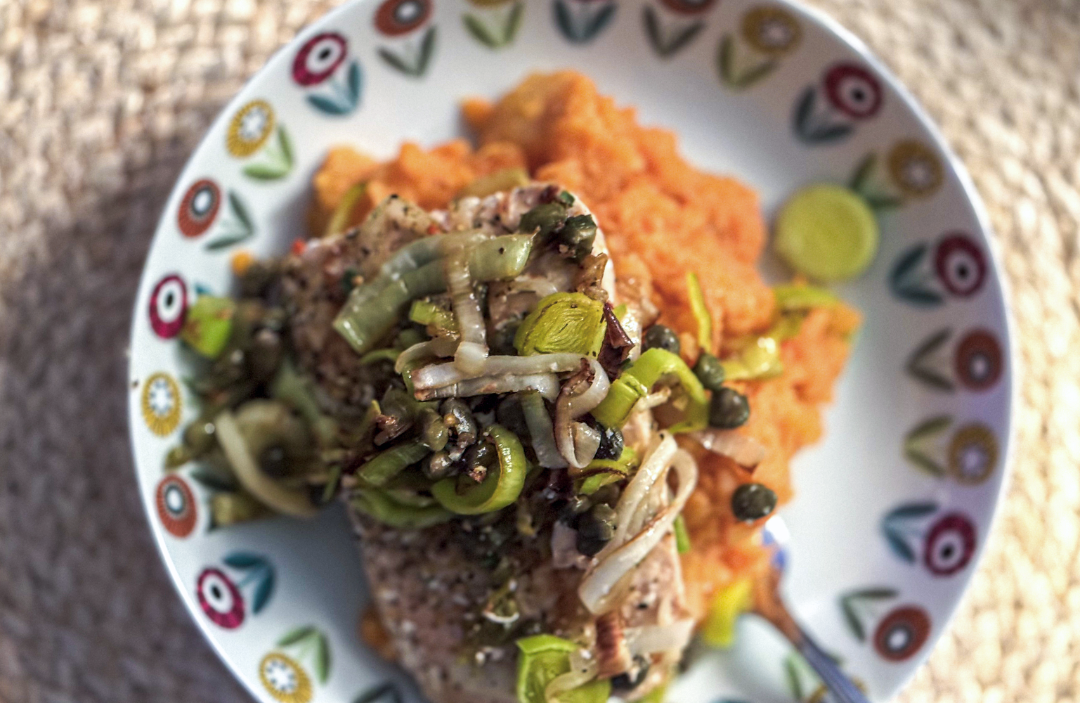 Sur la photo, le saumon est servi avec une purée de patates douces et de pommes de terre, pour un combo gagnant : crémeux, coloré et nourrissant.
