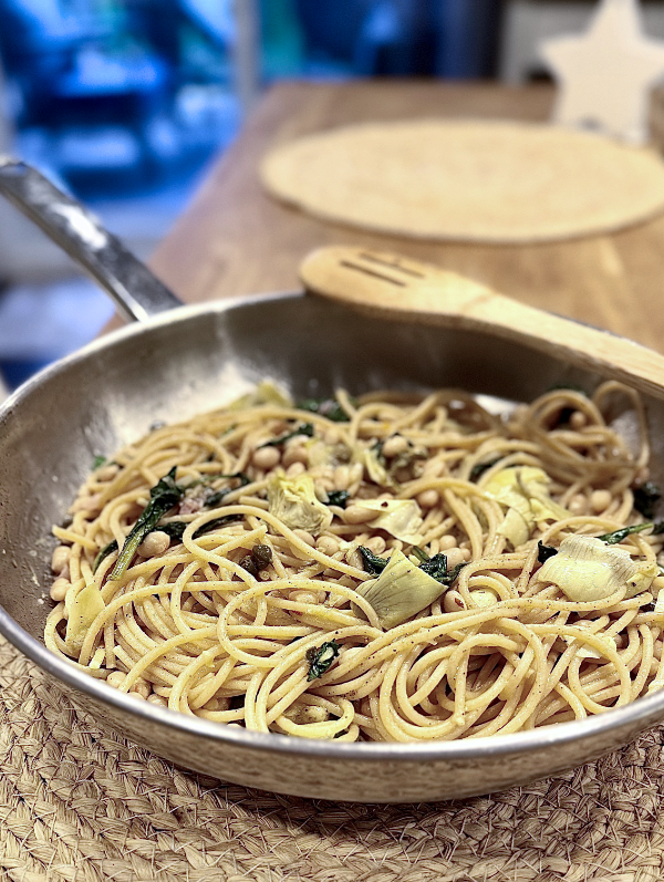 Un midi tranquille, quelques ingrédients simples sous la main artichauts, câpres, ail, citron et une touche de haricots blancs pour en faire un plat complet et nourrissant. Grâce aux haricots blancs, cette recette apporte aussi une belle dose de protéines végétales, tout en restant légère et digeste.